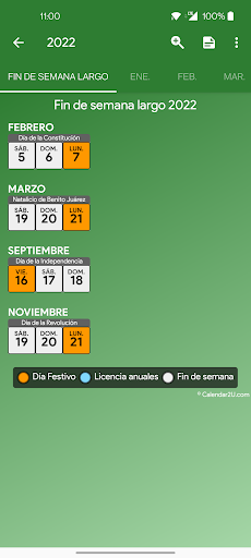 Calendar2U: Mexique Calendrier - Calendrier des vacances