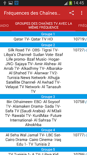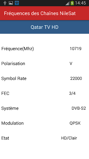 L'application "Nilesat fréquences Canaux" vous donne des informations détaillées sur les anciens et les mises à jour des fréquences de 2019 pour toutes les chaînes TV et radio sur le l'orbite 7° W (Nilesat 102, 201 et Eutelsat 7 West A)