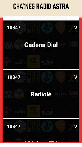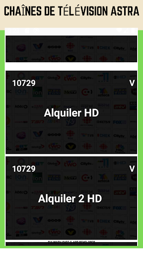 Dans l'application Infos sur les chaînes de télévision et de radio Astra, il existe différentes chaînes comme: