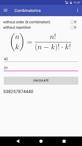 - combinatoire (avec / sans ordre / répétition)