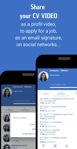 • CV.Video vous remet un lien de partage redirigeant vers votre CV Video, utilisable dans vos mails, en complément de votre candidature classique et sur vos réseaux professionnels.