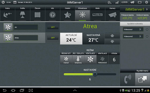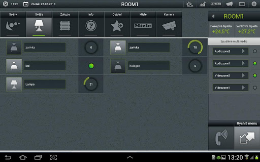 The application also brings comfort when using it at home too. By pressing a single icon, e.g. set the required light scene and adjust the lighting and blinds to watch a movie. But this application has the ability to do even more, like replacing all controllers to the television and amplifier, and controlling all multimedia in your home. This single application lets you have control over all audio and video zones in the home.