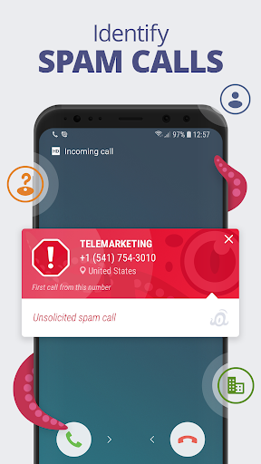 identifie instantanément le numéro appelant et vous montre des informations utiles à ce sujet. Reconnaît s'il s'agit de numéros de vos contacts stockés ou s'il s'agit d'un appel de spam, de télémarketing, d'une arnaque ou d'un autre numéro gênant.