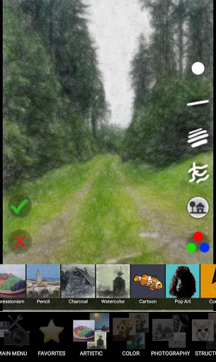 - Apply classic art styles like Impressionism, Watercolor, Charcoal or Pencil. Effects allow you to create modifications like Van Gogh, Sketch and many more.