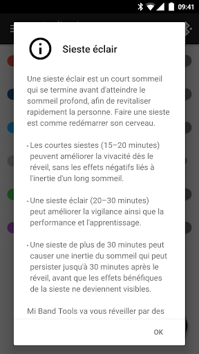 • Sieste éclair (vous avez besoin d'un court repos? Activez simplement cette option et le Mi Band vous réveillera par des vibrations lorsque vous serez reposé)