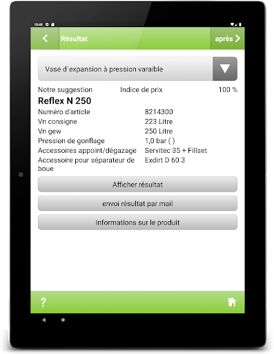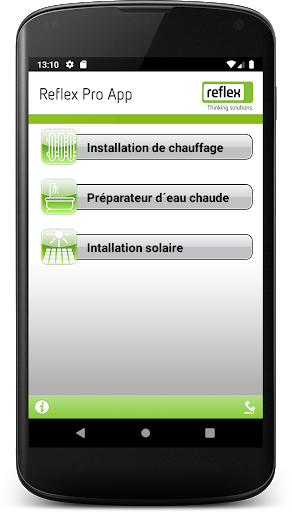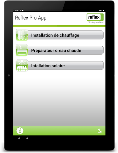 Répondez instantanément aux questions sur le maintien de la pression dans les installations de chauffage, de captage de l’énergie solaire et de production d’ESC – même dans les chaufferies les plus sombres. L’application Reflex Pro permet de recalculer les vases d'expansion existants, de définir la prépression et la pression de remplissage et de déterminer les mesures concernant la dureté de l’eau dans l’eau de remplissage et l’eau d’appoint conformément à la directive VDI 2035. Idéal pour la conception de projet et ébaucher des conseils et des estimations directement sur place avec une précision impressionnante.