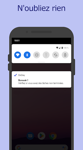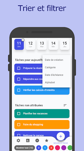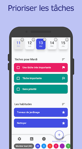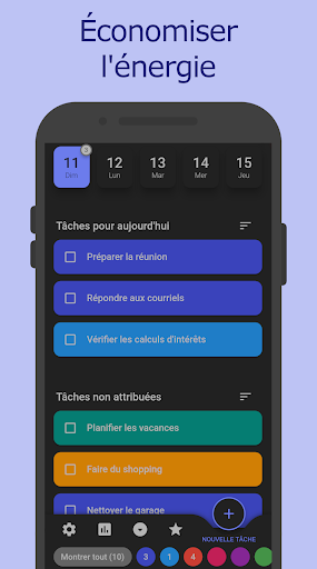 Chaque fois que de nouvelles tâches surviennent, tu peux les ajouter rapidement et facilement à ta liste sur l'application. Tu n'as donc pas besoin de les garder à l'esprit, et de nouvelles tâches peuvent facilement être ajoutées aux jours suivants.