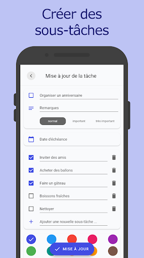 De plus, tu peux ajouter des notes à ta liste de tâches, qui peuvent être catégorisées grâce à un système de codification attrayant et coloré. Tu peux également définir des deadlines, afin de ne plus oublier de rendre des travaux à l'école, à l’université ou au travail.