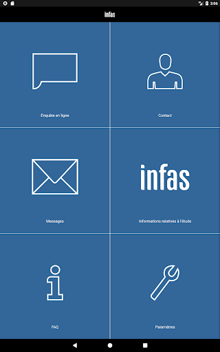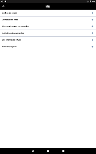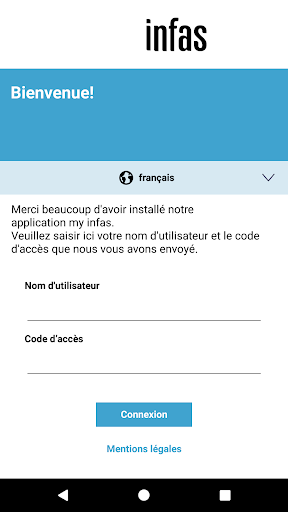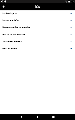 Le but de my infas est de communiquer les dernières informatmations concernant nos études aux personnes qui y participent. Afin de respecter les dispositions concernant la confidentialité des données, l'accès à toutes les rubriques de l'application est protégé et seuls les participants invités peuvent y accéder.