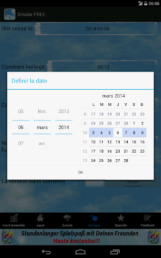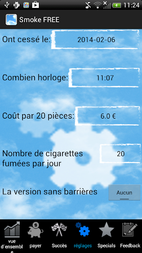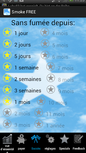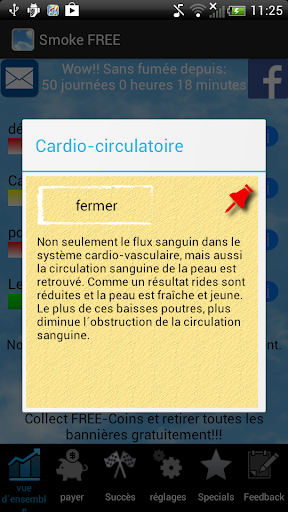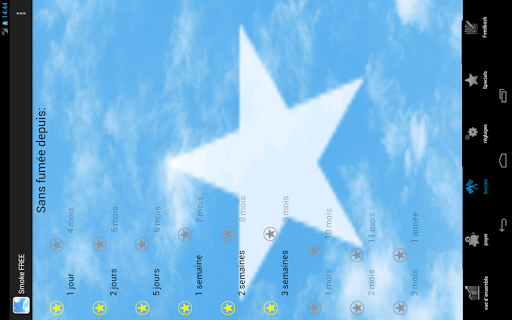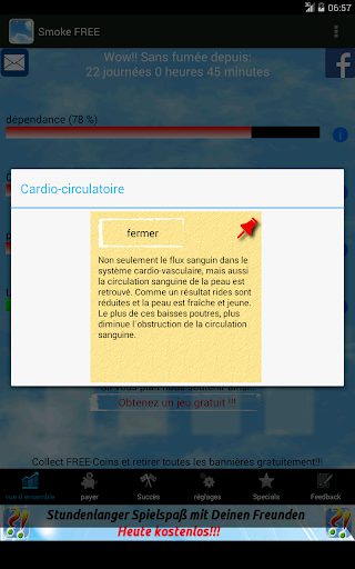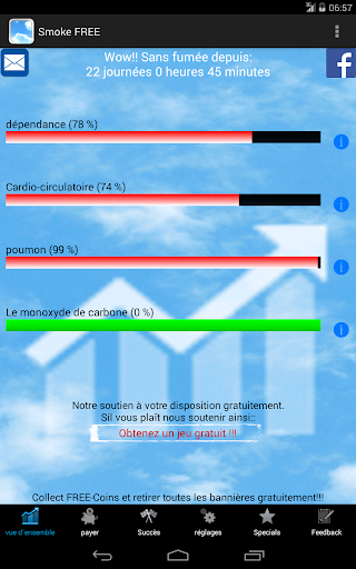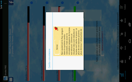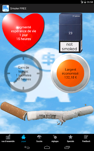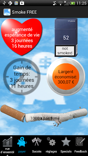 Cette application vous montre, entre autres choses, votre taux de dépendance actuelle, la régénération de votre circulation sanguine et de vos poumons et à quel