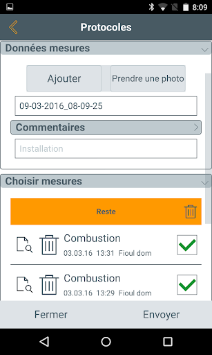 L'attestation d'entretien (ou rapport) avec les coordonnées du client, photos et votre logo, peut être envoyée à votre bureau ou directement à votre client comme documentation simple et rapide, immédiatement après la mesure.