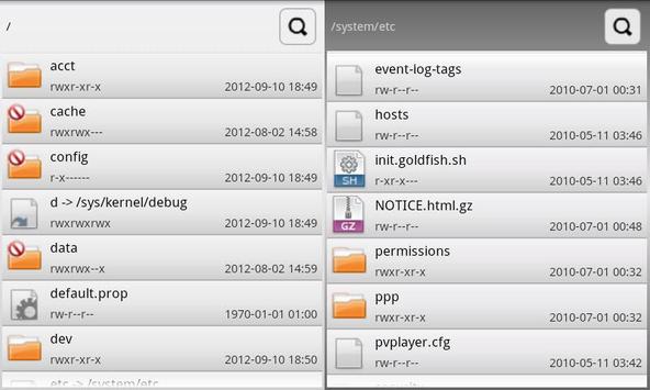 Through the split screen 2 directory trees are displayed parallel.