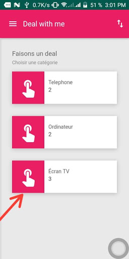 Application d'annonce de deals (produits et services) . Vous pouvez poster vos articles accompagnés d'une description et trouver facilement un acheteur approximité de chez vous