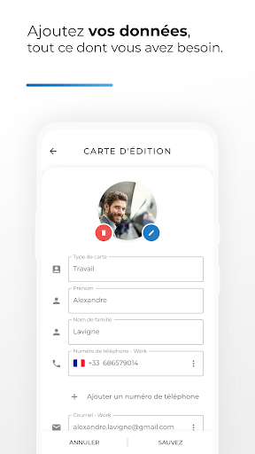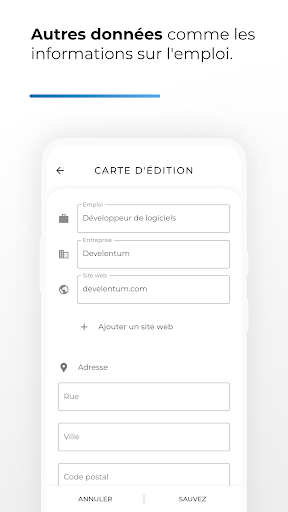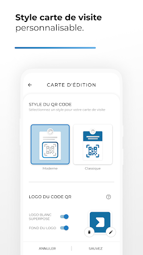 • Vos contacts peuvent simplement utiliser l'appareil photo de leur smartphone pour capturer le code QR sur votre carte de visite et accéder instantanément à vos coordonnées.