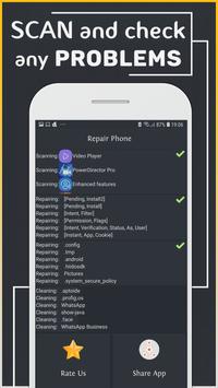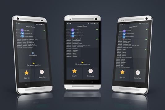 Repair System Android is a very lightweight memory booster App. By using our app you can repair your phone, Clean and Boost your android memory with just ONE Tap and for FREE. You can also Optimize your RAM, cool down your smartphone and uninstall apps to get more free storage on your Android device memory.