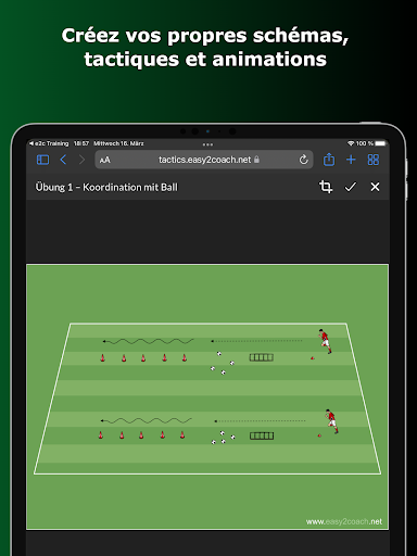 Et si une application vous permettait d'économiser 90% du temps que vous consacriez jusqu'à présent à la planification de vos entraînements hebdomadaires ? L'application easy2coach Training vous offre la plus grande variété d'exercices de football et de séances d'entraînement éprouvés, qui peuvent être consultés dans une application et pratiqués directement.