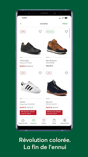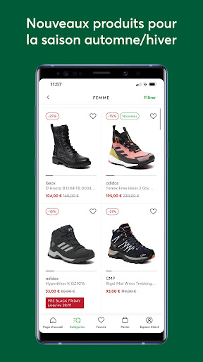 À la maison, en voyage ou en balade ? Avec notre appli, faites des achats oú vous voulez. Simple et intuitive, elle vous guidera lors de votre achat de chaussures tendance. La livraison rapide vous permettra de profiter des chaussures de vos rêves rapidement.