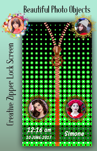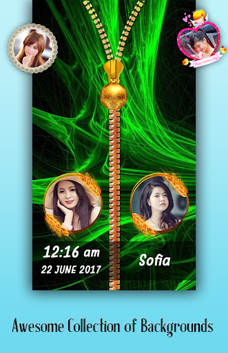 Best part of zipper lock screen is you can set couple photo on lock screen with awesome and creative objets. Even write your name on zipper lock screen. you can use it as couple zipper lock screen