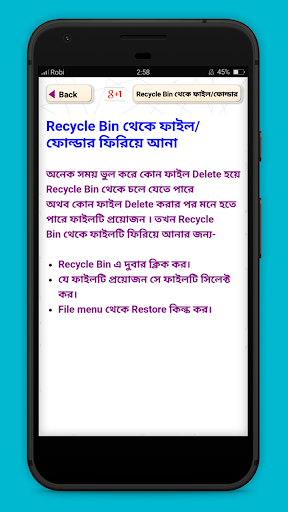 কম্পিউটার শিক্ষা ,কম্পিউটার সমস্যা ও সমাধান ,কম্পিউটার পরিচিতি ,কম্পিউটার টিপস ও ট্রিকস ,গ্রাফিক্স ডিজাইন শিখুন ,কম্পিউটার প্রোগ্রামিং (সি) ,30 দিনে কম্পিউটার টাইপ শিখুন ইত্যাদি। তাই ল্যাপটপের যত্ন , কম্পিউটার তথ্য,ডিলিট হওয়া ফাইল রিকভারি করার উপায় ,কম্পিউটার বিষয়ক প্রশ্ন উত্তর ,নষ্ট কম্পিউটার ঠিক করার উপায় ,উইন্ডোজ সেটআপ দেয়ার নিয়ম ইত্যাদি জানতে অ্যাপ টি সংগ্রহে রাখুন।আশা করব অ্যাপটি দ্বারা সবাই খুব উপকৃত হবেন এবং আমাদের দেয়া তথ্য গুলো খুব কাজে দিবে।