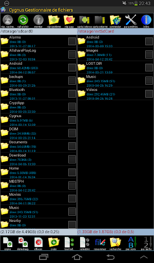 Naviguer dans le système et les dossiers fichier sur deux panneaux