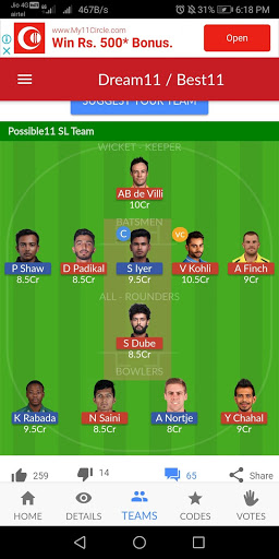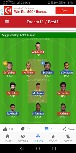 F11 Expert - Winning Fantasy Cricket Dream Teams Select your team