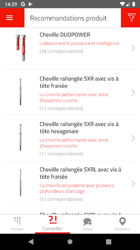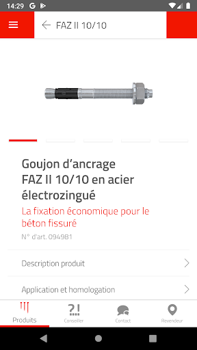 L’application fischer vous fournit les informations dont vous avez besoin et vous propose la solution de fixation qui correspond à votre besoin à tout moment et directement sur site.