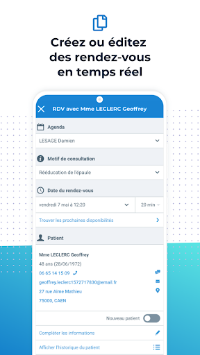 - Consultez des informations sur vos patients juste avant ou pendant vos rendez-vous