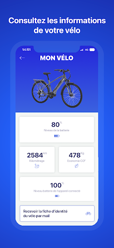 - Utilisation de la fonction de Géolocalisation en arrière plan lors d'un parcours. L'acceptation de la géolocalisation permettra également à l'application de s'appairer correctement avec votre vélo.