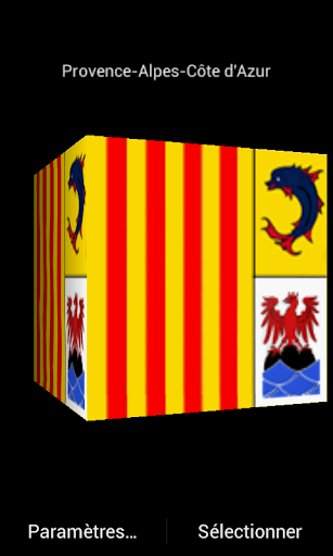 Ce fond d'écran animé (LWP = Live WallPaper) affiche un cube 3D à drapeaux. Les drapeaux sont ceux de régions françaises, contemporaines ou plus anciennes.