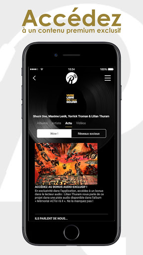 - Vous avez désormais accès à l’ensemble des fonctionnalités Revive : écouter les albums, accéder à la bio et à la discographie de vos artistes préférés, aux paroles et aux clips des titres, aux messages exclusifs postés par l’artistes dédiés à la communauté Revive, à l’intégralité de ses réseaux sociaux et bien plus encore.