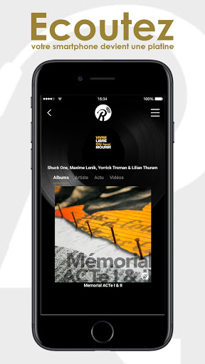 - Une fois l’application téléchargée, vous accédez à l’intégralité des titres de l’album et à son contenu premium
