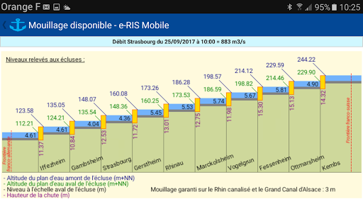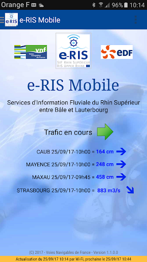 L'application e-RIS Mobile est issue d'un partenariat entre Voies navigables de France (VNF) et Électricité de France (EDF) pour offrir aux usagers du Rhin Supérieur des services d'information fluviale afin d'améliorer la navigation entre Bâle et Lauterbourg.