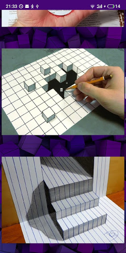 Apprenez à dessiner 3D de manière réaliste grâce aux instructions photo de haute qualité et aux commentaires de notre application.