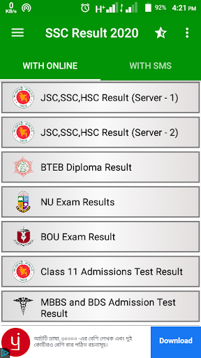 SSC Resut will be published very soon.if you want to get exam result with marksheet or if you want to get your exam result with SMS you can use this application.In this application you find your result with online or ofline