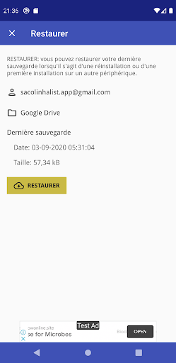 Restaurez votre sauvegarde en réinstallant l'application ou en l'installant sur un nouvel appareil.