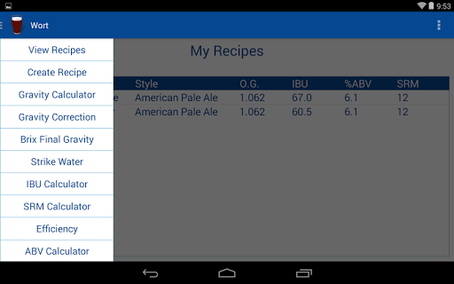 Créer une recette, calculez OG, calculs de correction de gravité pour frapper vos numéros de prébault, calculs d'amorçage de bouteilles, calculatrices de carbonatation, grève Calculateurs d'eau, SRM, IBU, Efficacité, ABV et Brix Final Gravity Calculatrices de gravité.