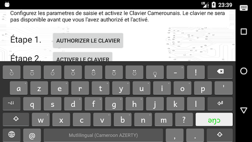 Le clavier Camerounais est un clavier virtuel géré par SIL Cameroun. Il permet à l’utilisateur à saisir du texte dans n’importe quelle langue du Cameroun qui suit le AGLC (Alphabet général des langues camerounaises).