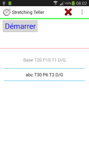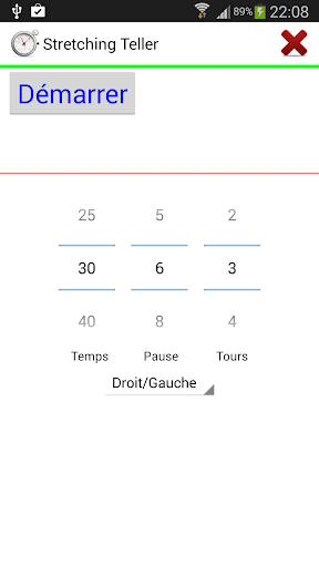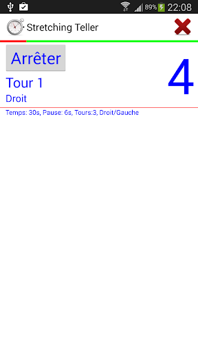 Minuterie de base pratique pour des exercices d'étirement. Le chronomètre indique le temps et joue un son lors du démarrage, la finition et entre tours. Début et fin avoir un son différent.