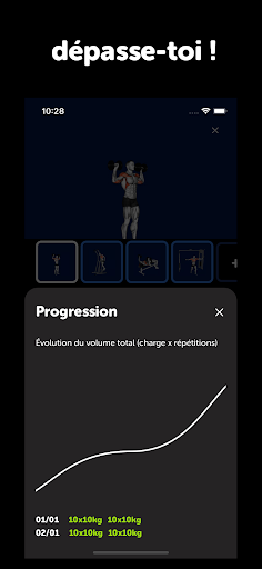 ● Concentre-toi sur ton entraînement de musculation et l'exécution des exercices et laisse Fitrest te faire progresser !