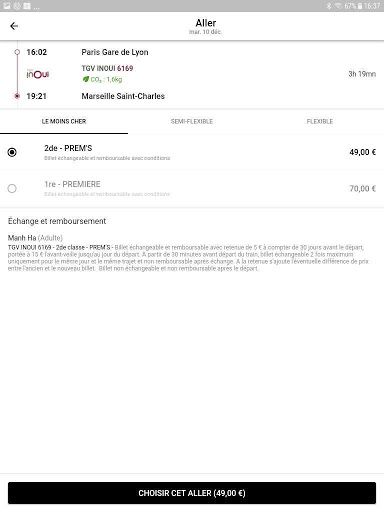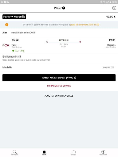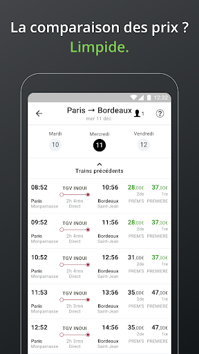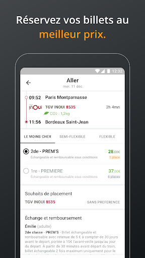 - Consulter les émissions de CO2 de chaque trajet, avant et après l’achat de vos billets.