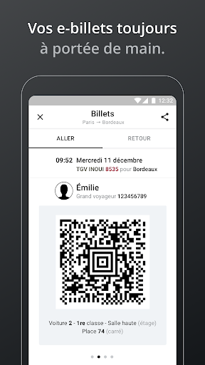- Retrouver automatiquement vos e-billets (codes-barres et pdf) dans l’application.