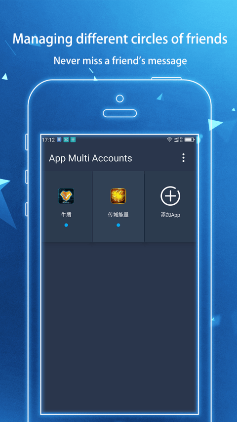 Parallel Accounts allows you to switch between the apps! Run multiple accounts of the same app simultaneously by a single app, receive infomation of both sides.