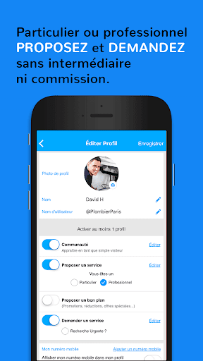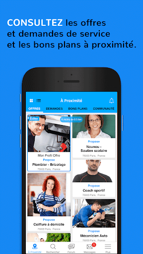 - PROFESSIONNEL ? Artisan, plombier, électricien, peintre, mécanicien, comptable, commerçant, informaticien, freelance... Votre clientèle de proximité est essentielle ! Développez votre activité en proposant vos services localement mais aussi lors de vos déplacements. Augmentez la visibilité de votre entreprise et attirez des nouveaux clients en partageant vos bons plans.