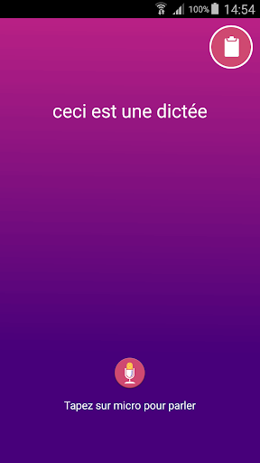 Cette application vous permet de dicter dans toutes les langues supportées par la voix d'entrée, puis vous permet de copier dans le presse-papiers le résultat.