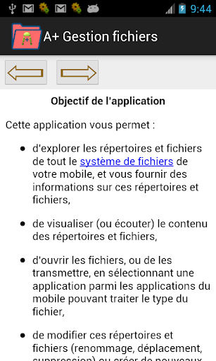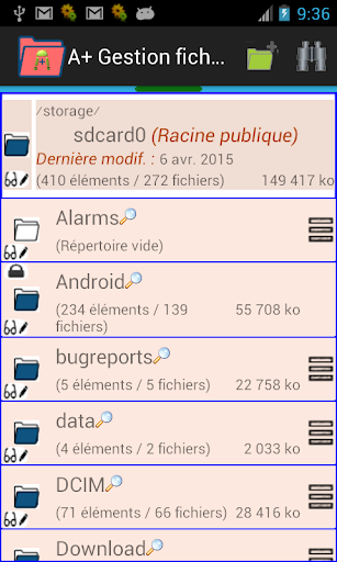 - explorer non seulement le contenu de la mémoire externe qui contient les répertoires et fichiers publics, mais aussi tout le système de fichier,