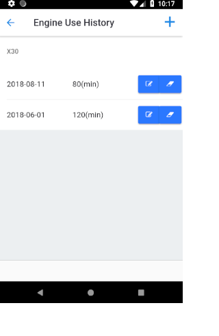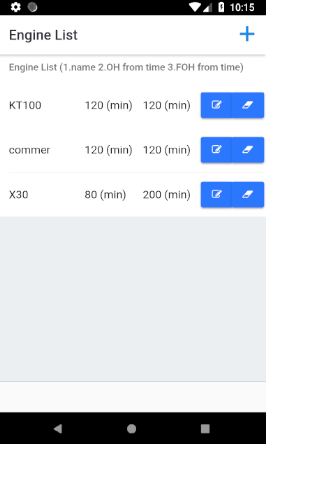 レーシングカートのエンジンをアプリで管理 オーバーホール後の稼働時間、フルーオーバーホール後の稼働時間を管理します。
