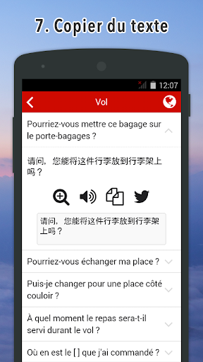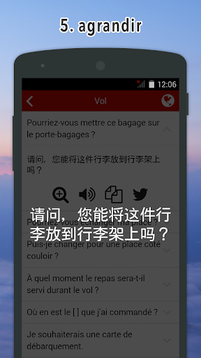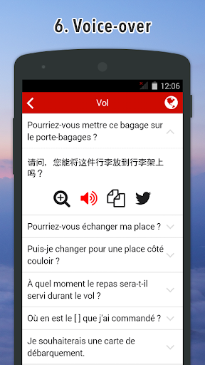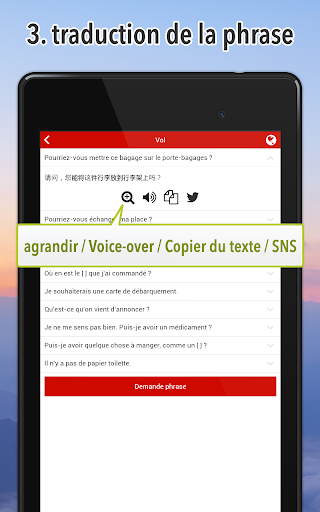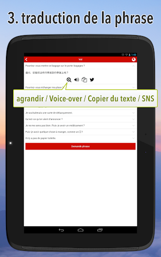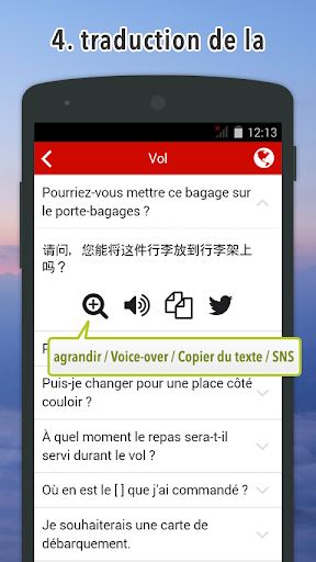 En appuyant sur un bouton, l'application vous donne la traduction et la prononciation de la phrase dont vous avez besoin.