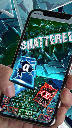 😎The setting of the green and blue colors serves as a perfect background to make the feature broken glass buttons stand out in this Shattered Glass keyboard theme.