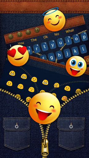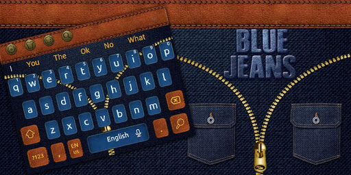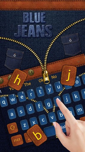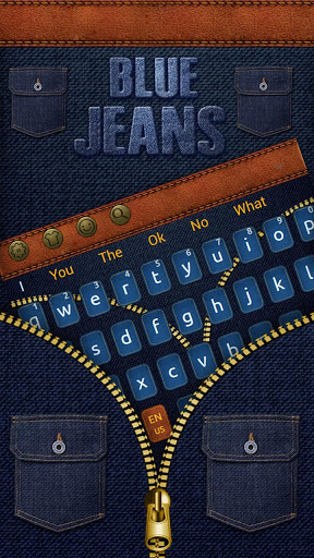 to help you text faster than ever with Shiny Blue Jeans Gold Zipper Keyboard Theme