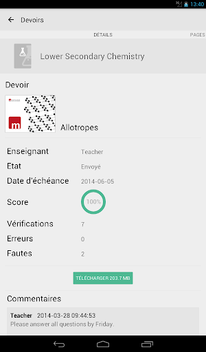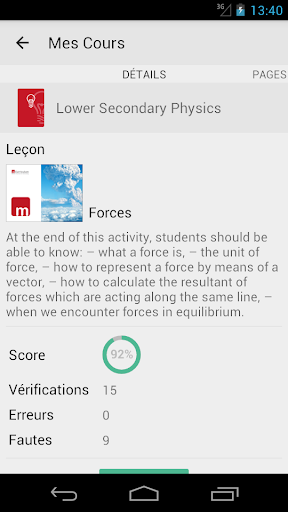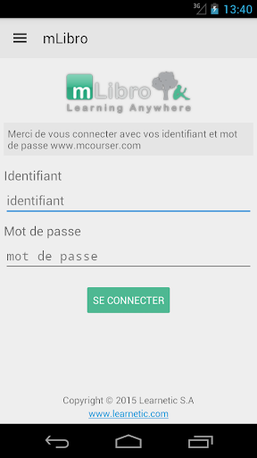 hors connexion. Vous pouvez non seulement sélectionner vos objets multimédia à partir de vos leçons en ligne, mais aussi récupérer les devoirs que votre enseignant aura préparés à votre attention. Quand votre appareil sera à nouveau connecté à Internet, tous vos résultats se synchroniseront avec votre compte LMS. Actuellement, l’application mLibro fonctionne avec le LMS mCourser